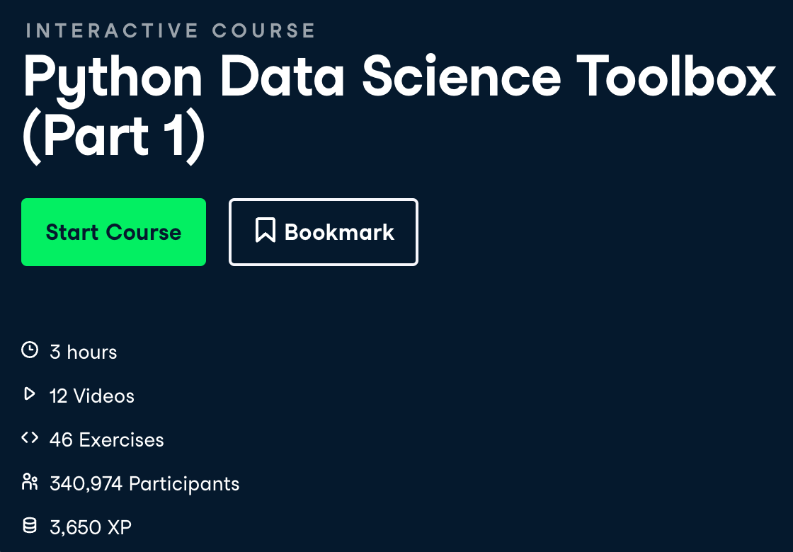 - You will learn the art of function writing in this first Python Data Science Toolbox course.