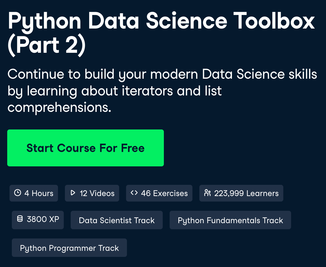 - https://www.datacamp.com/courses/python-data-science-toolbox-part-2