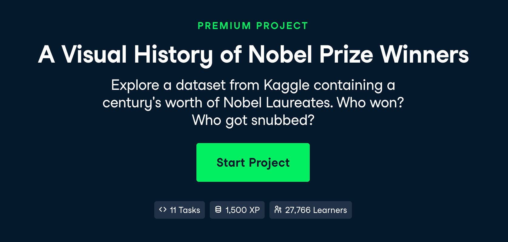 - Explore a dataset from Kaggle containing a century's worth of Nobel Laureates.