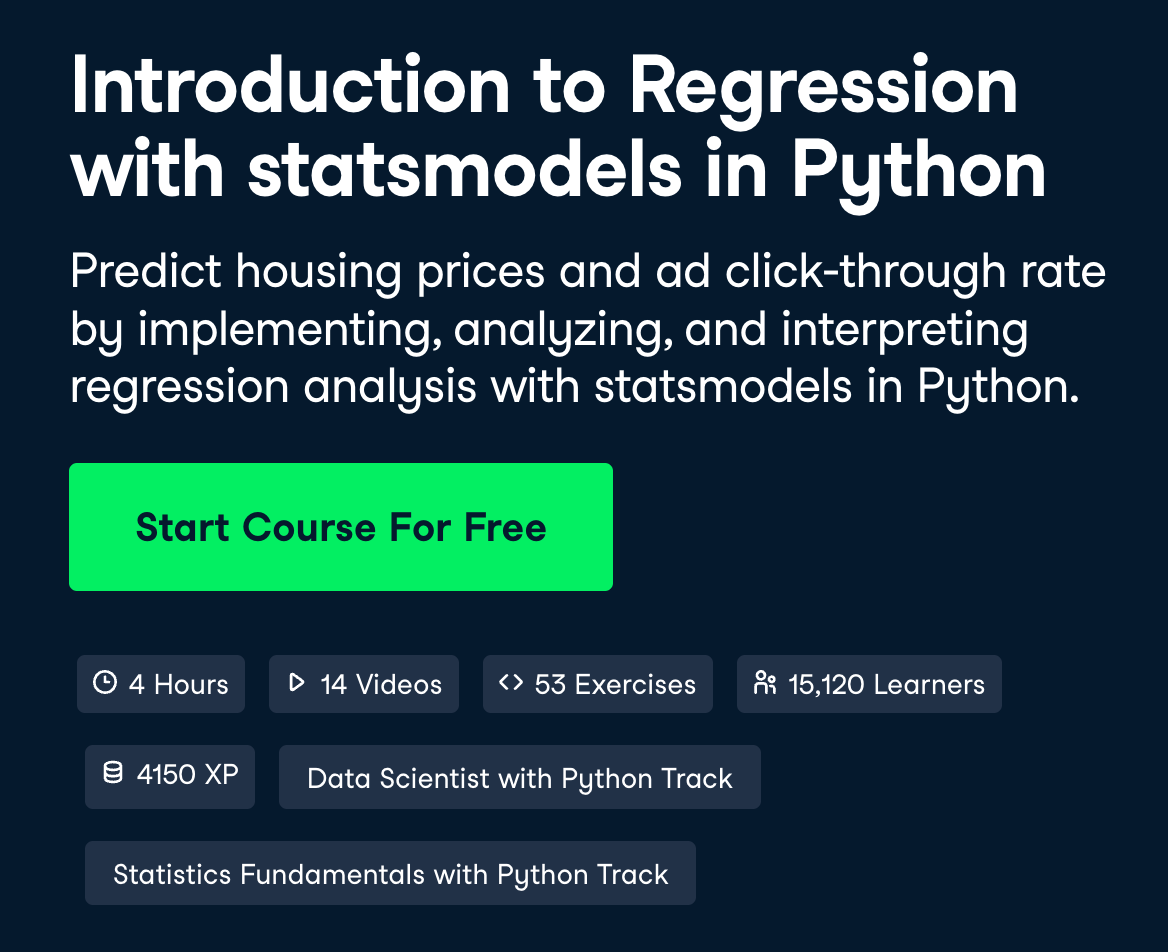 16주차 학습 material URL: https://www.datacamp.com/courses/introduction-to-regression-with-statsmodels-in-python