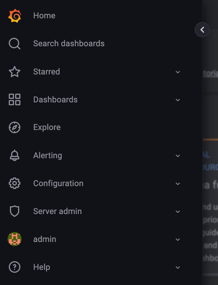 - Server admin : 사용자, 조직, 플러그인 등 설정