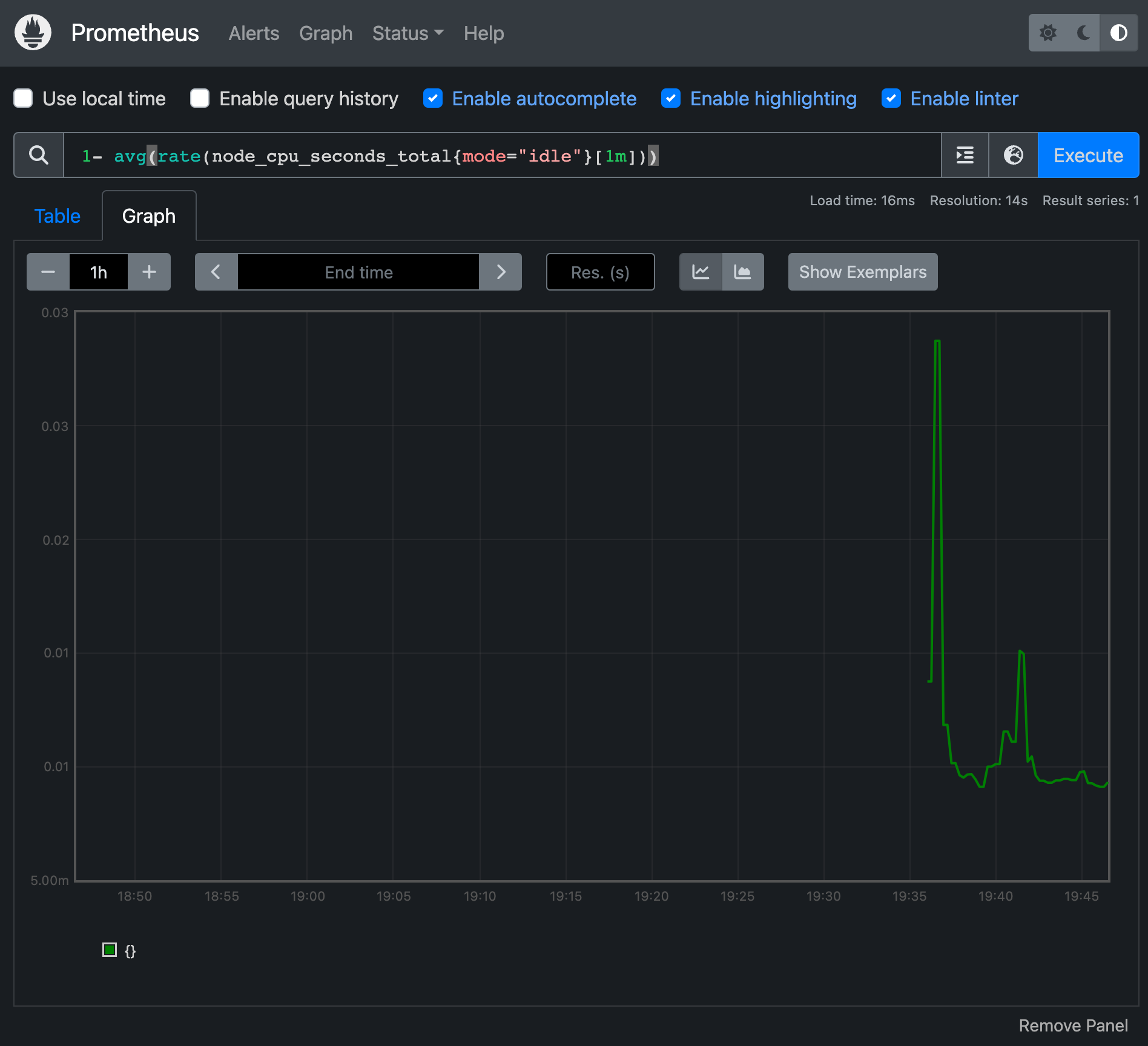 - Explore : 쿼리 언어 PromQL를 이용해 메트릭 정보를 그래프 형태로 탐색