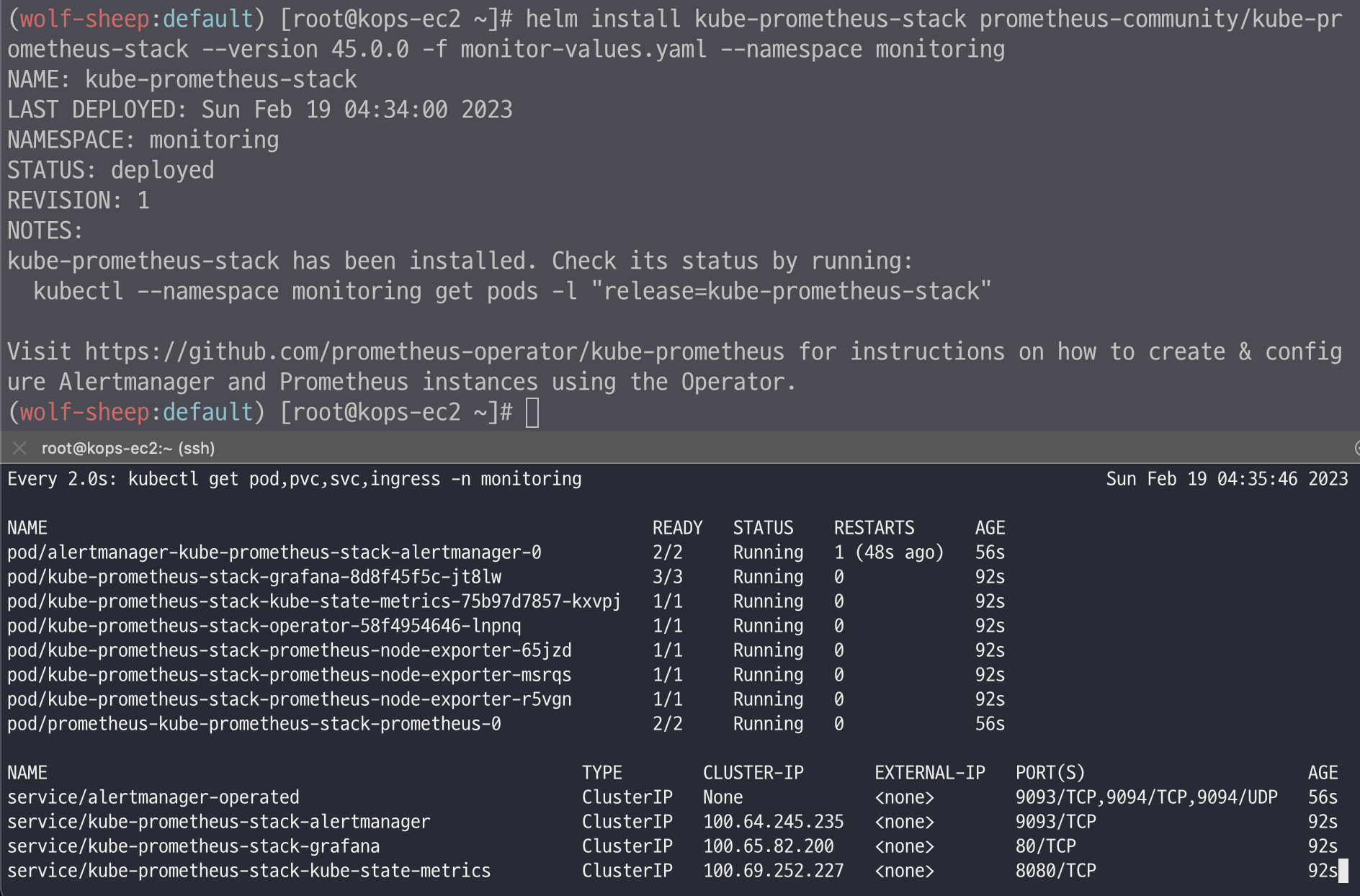 watch kubectl get pod,pvc,svc,ingress -n monitoring