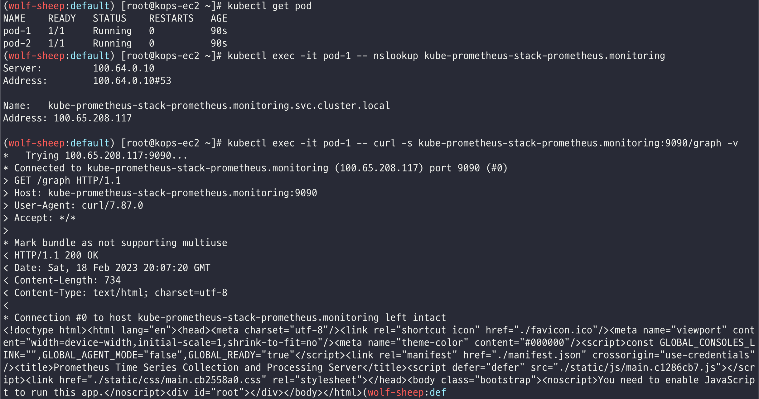 kubectl exec -it pod-1 -- curl -s kube-prometheus-stack-prometheus.monitoring:9090/graph -v