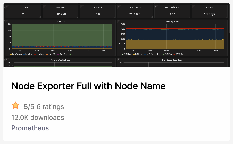 - [Node Exporter Full] Dashboard → Import → 1860 입력 후 Load ⇒ 데이터소스(Prometheus 선택) 후 Import 클릭