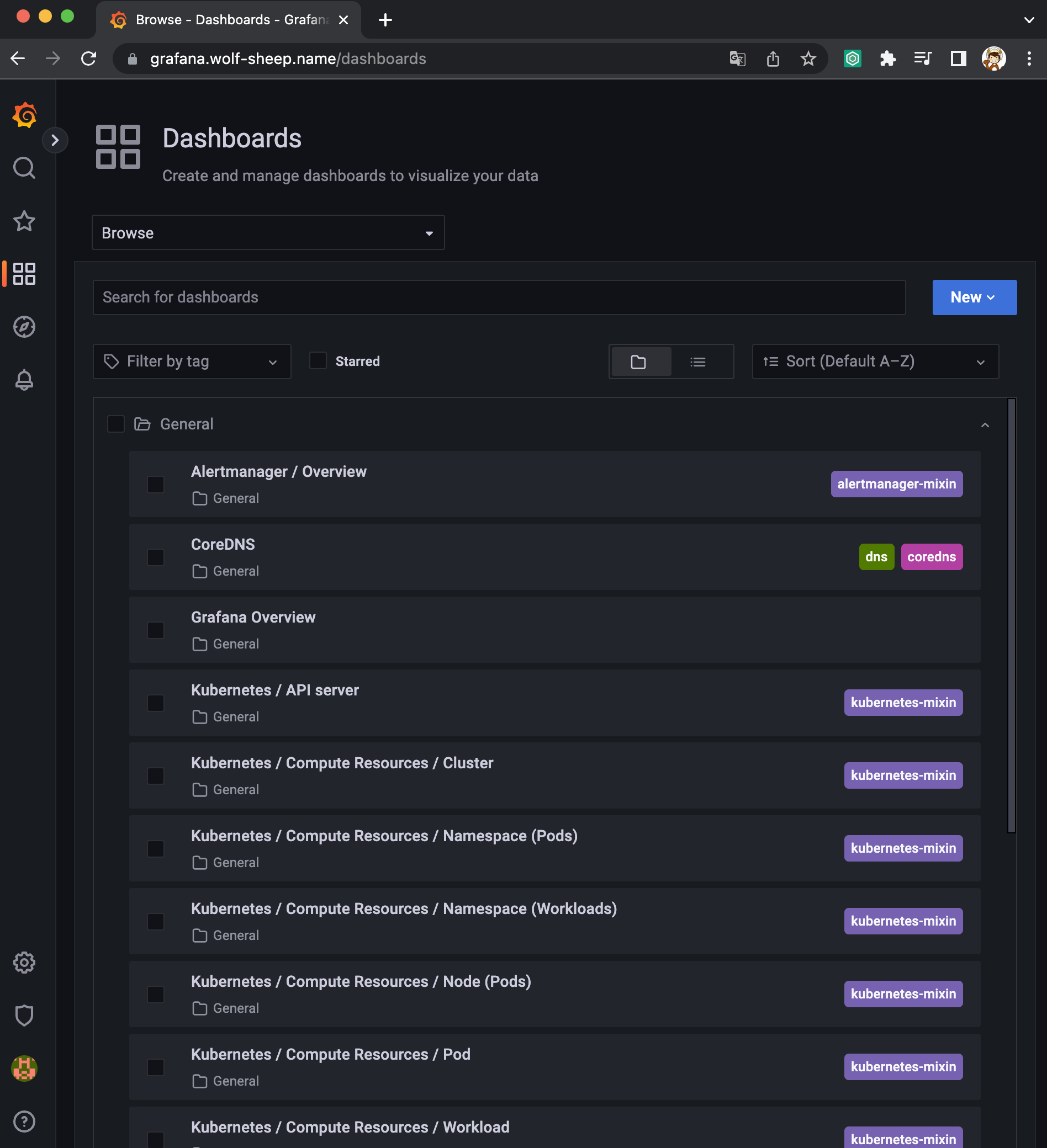 - 스택을 통해서 설치된 기본 대시보드 확인 : Dashboards → Browse