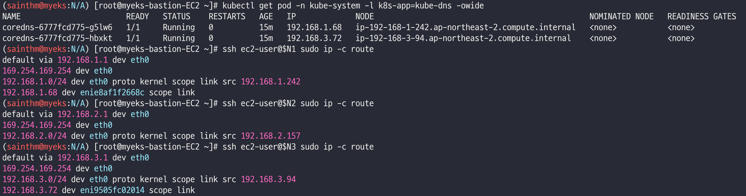 coredns-6777fcd775-hbxkt 1/1 Running 0 15m 192.168.3.72 ip-192-168-3-94.ap-northeast-2.compute.internal <none> <none>