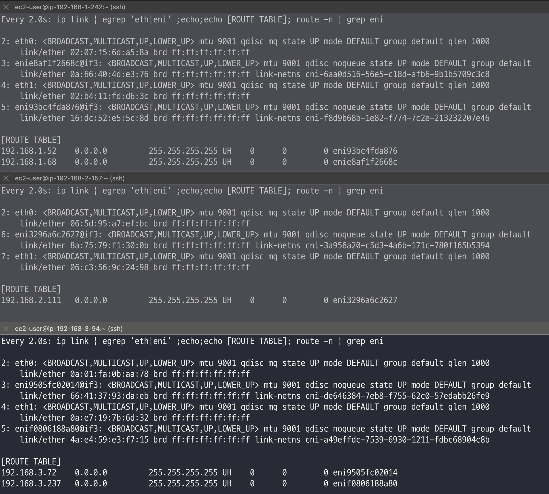 # 노드의 라우팅 정보 확인 >> EC2 네트워크 정보의 '보조 프라이빗 IPv4 주소'와 비교해보자