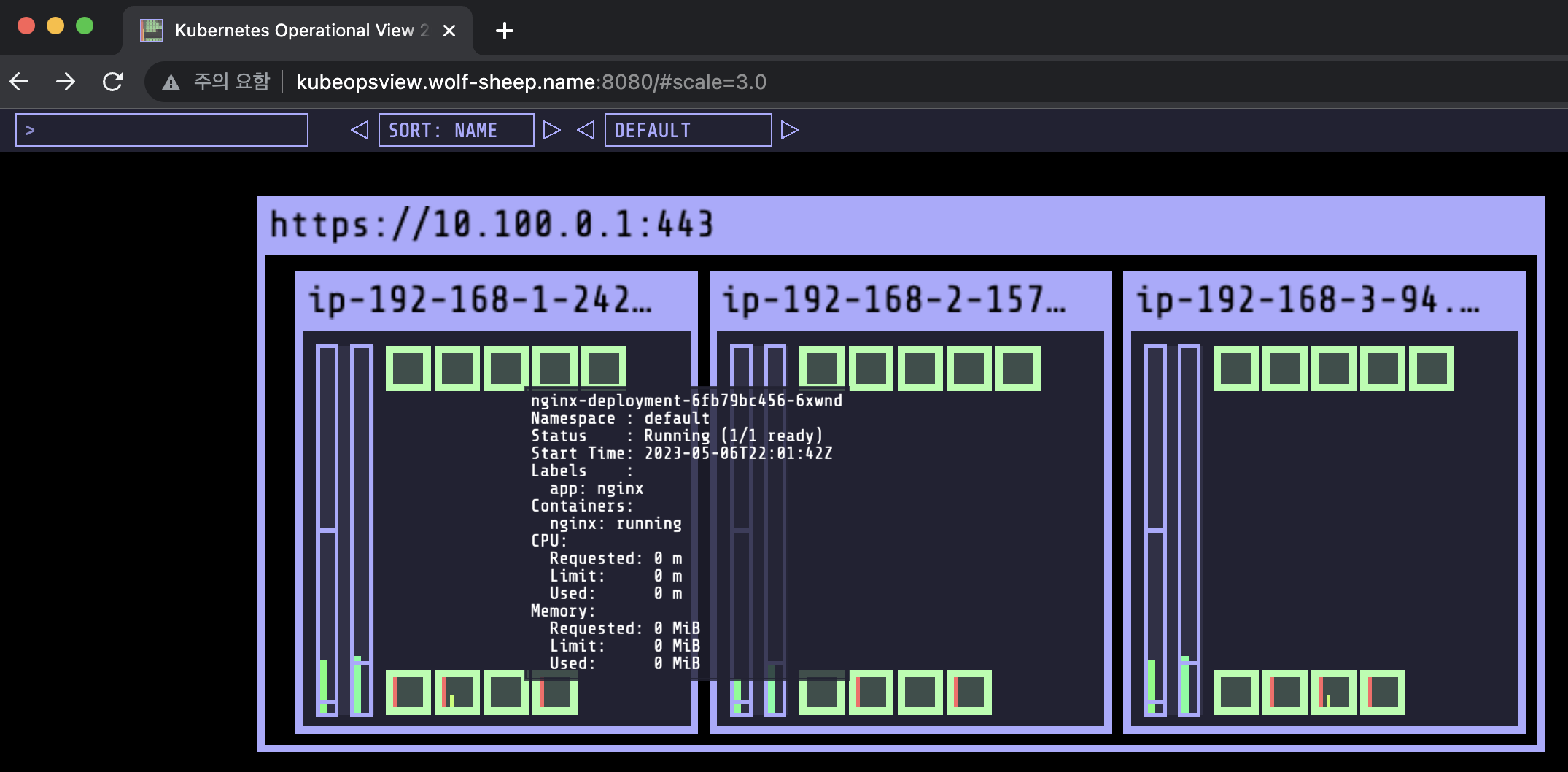 helm install kube-ops-view geek-cookbook/kube-ops-view --version 1.2.2 --set env.TZ="Asia/Seoul" --namespace kube-system