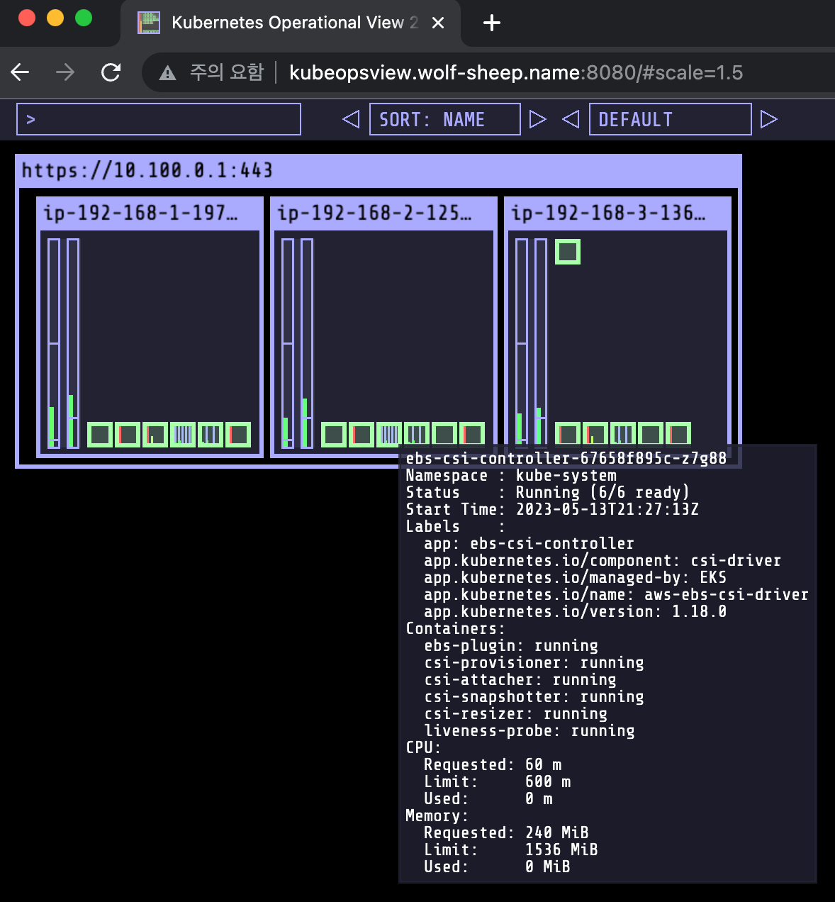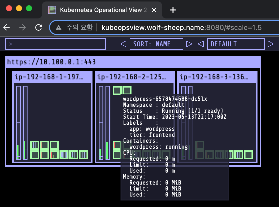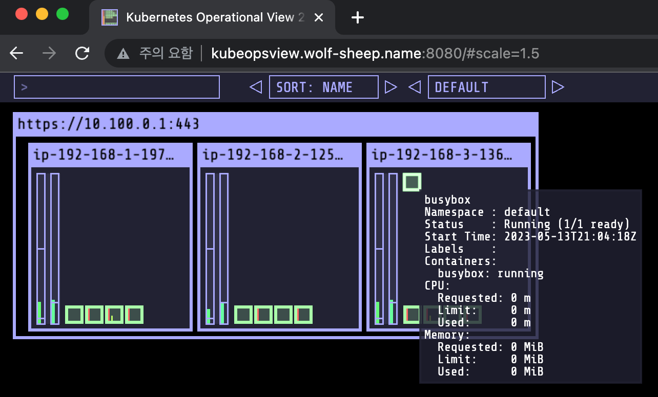 helm install kube-ops-view geek-cookbook/kube-ops-view --version 1.2.2 --set env.TZ="Asia/Seoul" --namespace kube-system