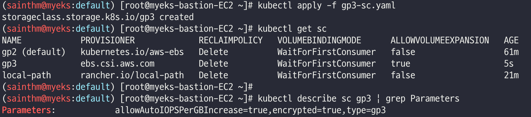 NAME PROVISIONER RECLAIMPOLICY VOLUMEBINDINGMODE ALLOWVOLUMEEXPANSION AGE