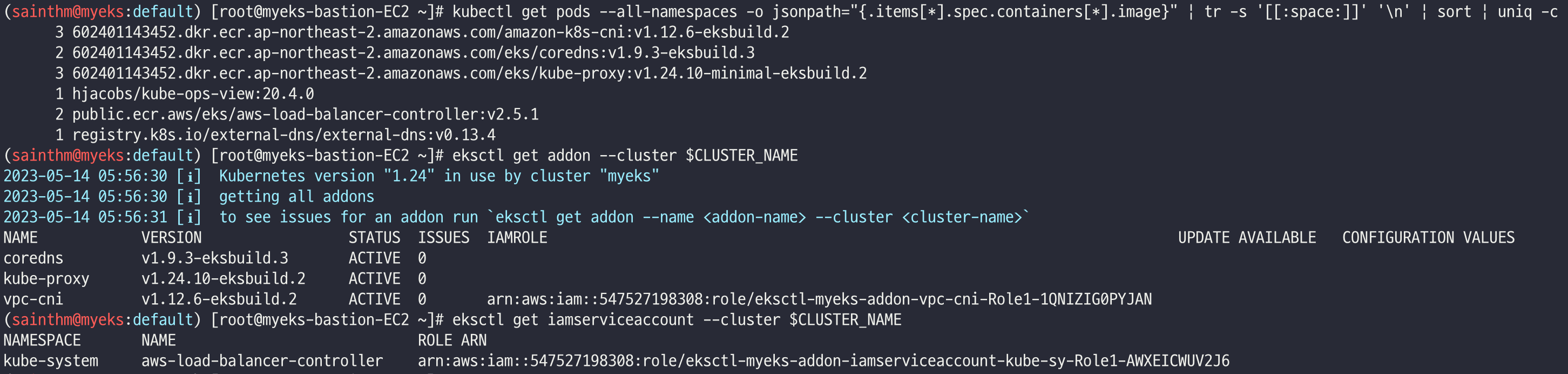 eksctl get iamserviceaccount --cluster $CLUSTER_NAME