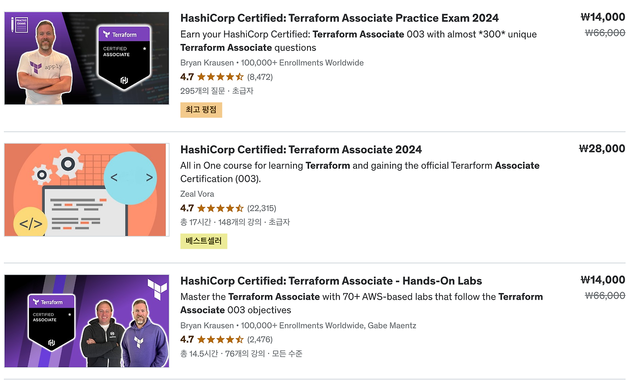 Terraform Associate 및 관련 Certification 에 대한 관심이 있으신 분들에게 도움이 되었으면 좋을 것 같습니다.