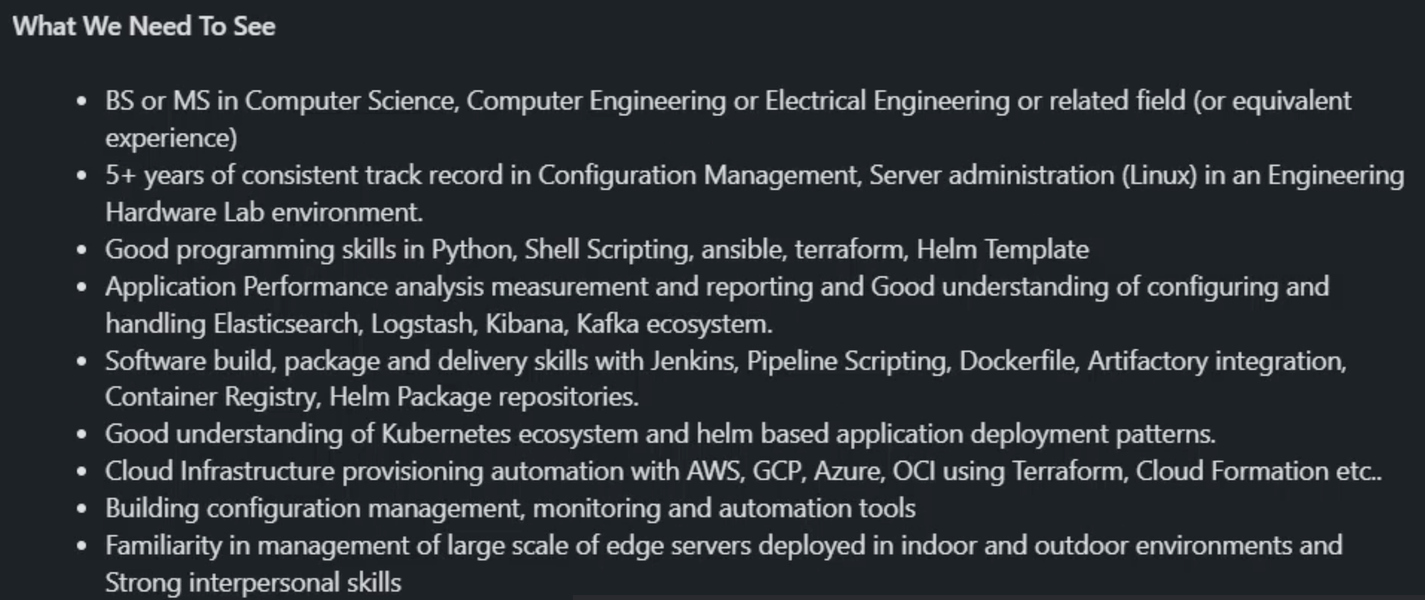 - You have a strong bias for automation and taking the time to think about the right way to solve a problem versus quick fixes or band-aids.