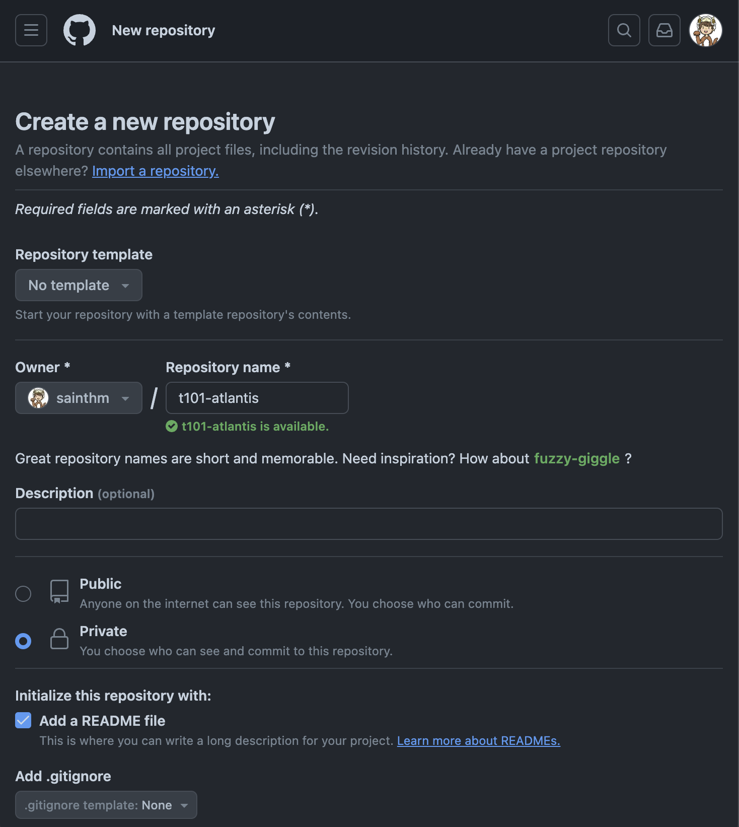 Git Repo (Private) 생성
