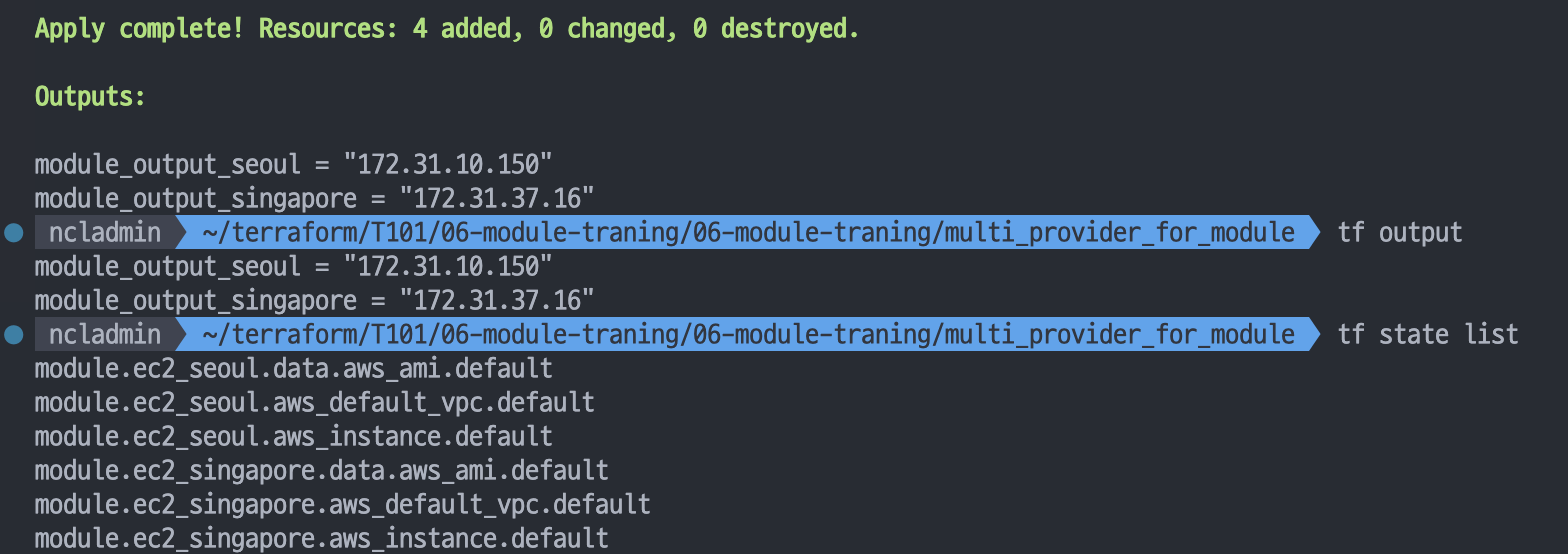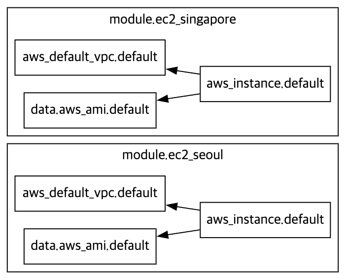 - 테라폼 구성 내에서 각 모듈은 논리적으로 묶여져 독립적으로 프로비저닝 및 관리되며, 그 결과는 은닉성을 갖춰 필요한 항목만을 외부에 노출