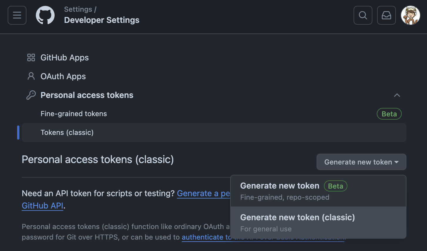 Here we'll create the access token that Atlantis uses to comment on the pull request and set commit statuses.