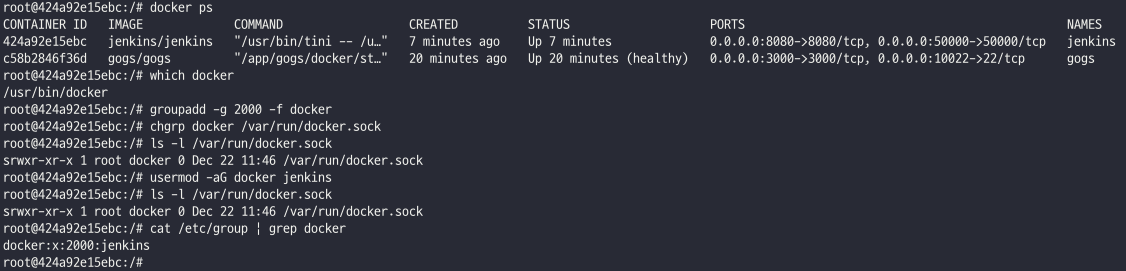 docker compose exec --privileged -u root jenkins chgrp docker /var/run/docker.sock