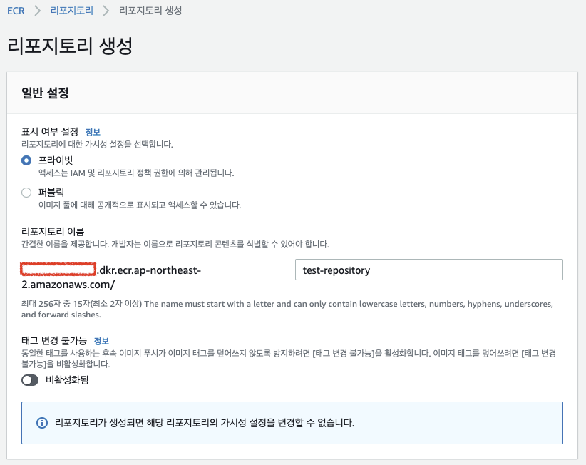 - 설정 후, 리포지토리 생성 버튼을 클릭하여 리포지토리를 생성합니다.