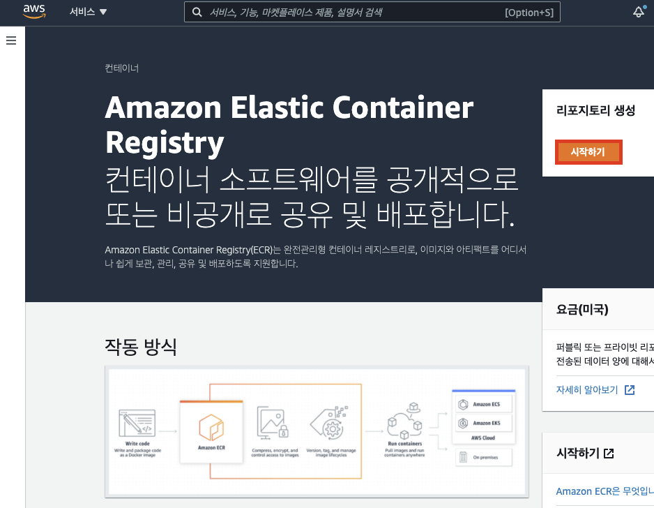 리포지토리가 없을 경우, ECR 대시보드 화면이 출력됩니다.