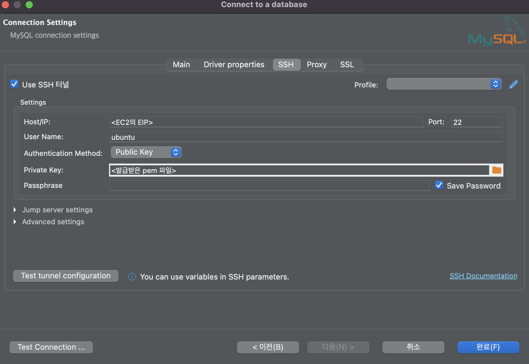 - 보안그룹: SSH(22), MySQL/Aurora(3306)