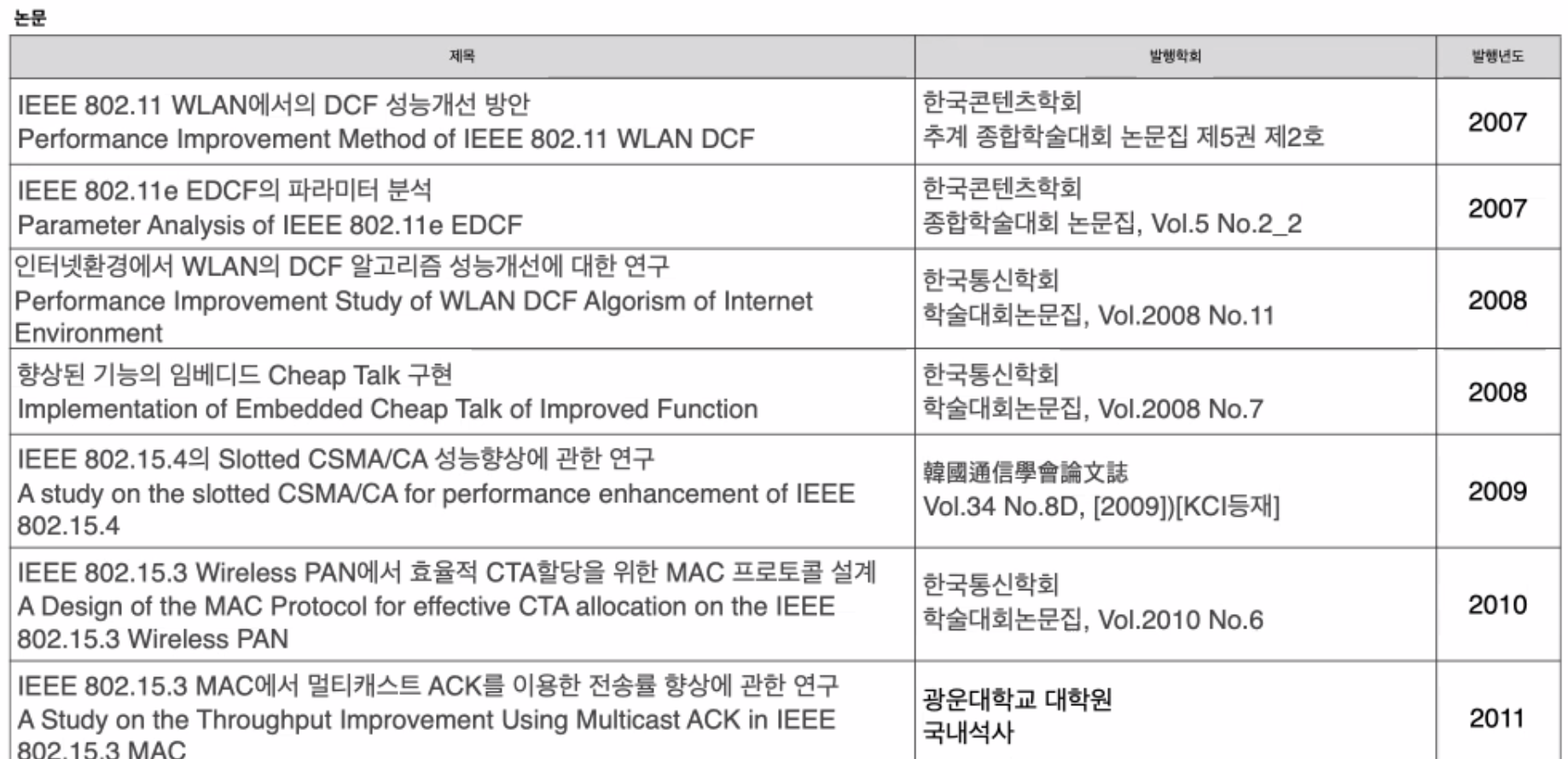 - WLAN, WPAN MAC(Media Access Control) 프로토콜 설계