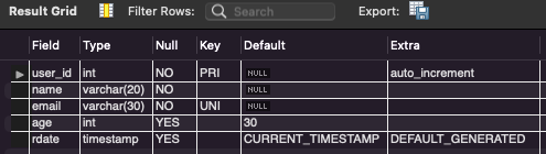 user_id INT NOT NULL
