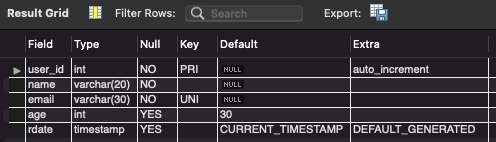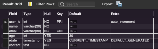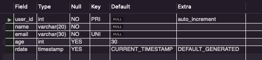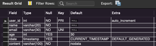# Table : 필드명, 데이터타입, 제약조건