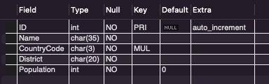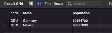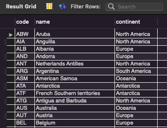 USE world;