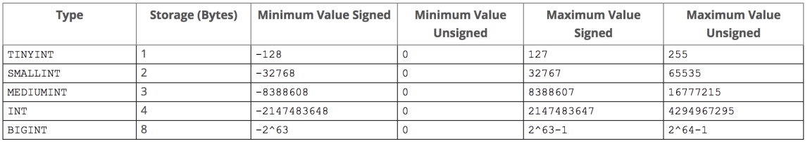 Reference URL: https://dev.mysql.com/doc/refman/5.7/en/integer-types.html