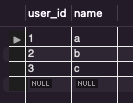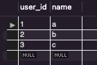 VALUES ("a"), ("b"), ("c");