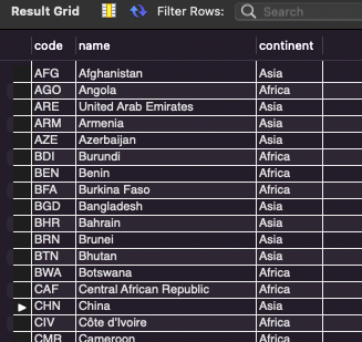 WHERE continent IN ("asia", "africa");