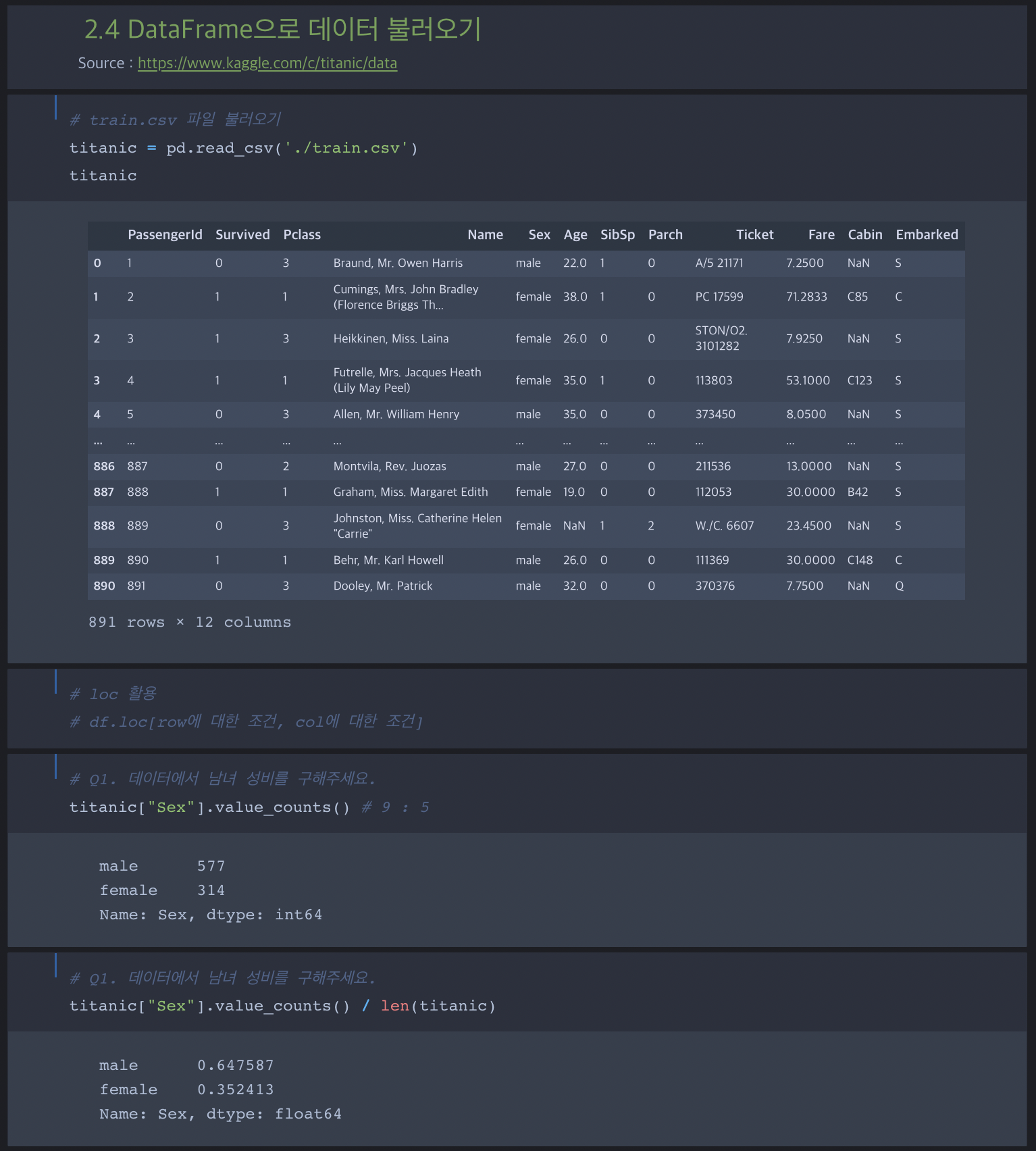 | Part 2. 파이썬 프로그래밍 기초와 데이터분석 | Ch 03_데이터 전처리 | CH03_05. loc과 iloc을 이용한 원하는 위치의 데이터 추출 |