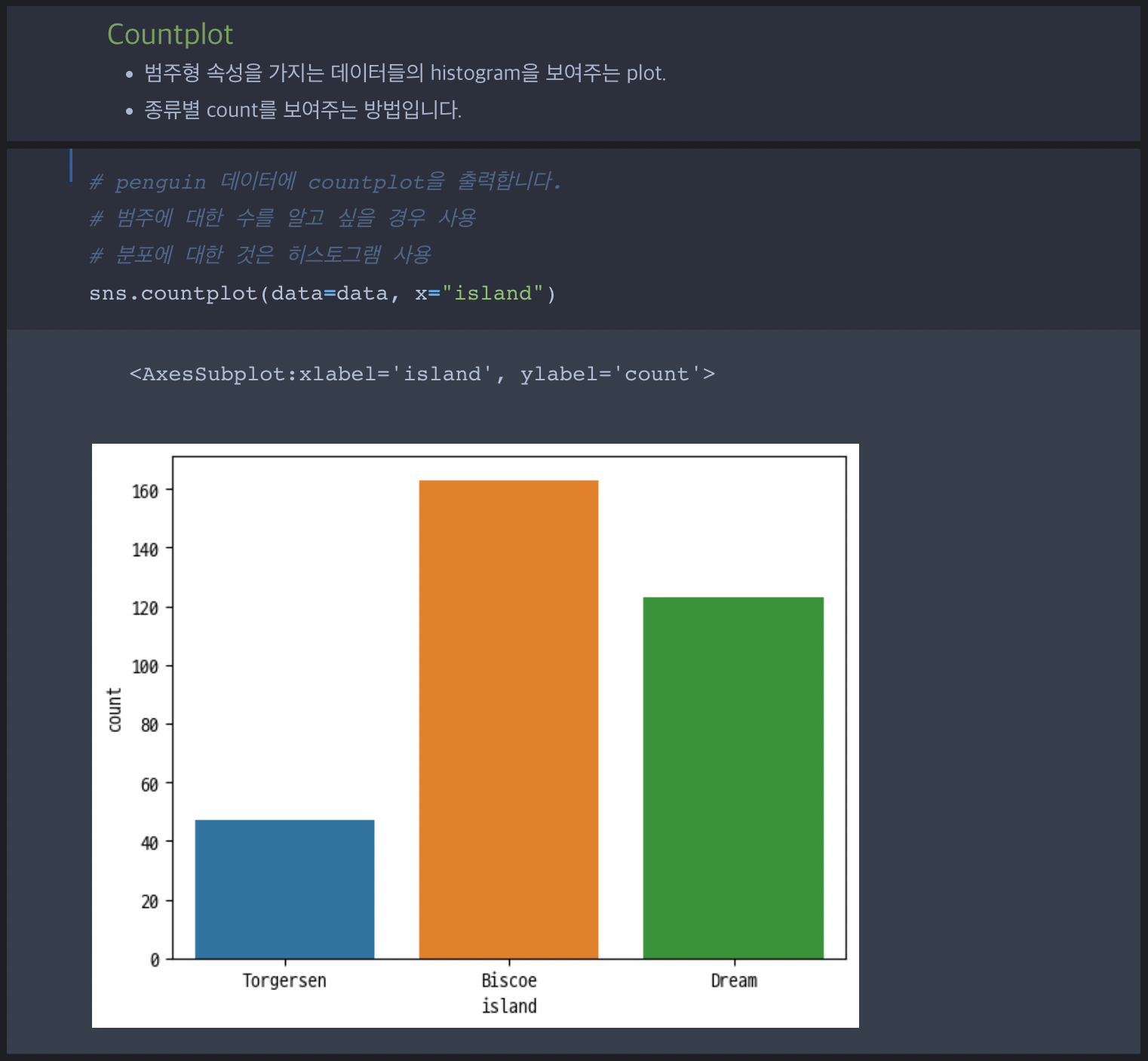| Part 2. 파이썬 프로그래밍 기초와 데이터분석 | Ch 04_데이터 시각화 | CH04_06. countplot을 이용한 막대그래프 그리기 |