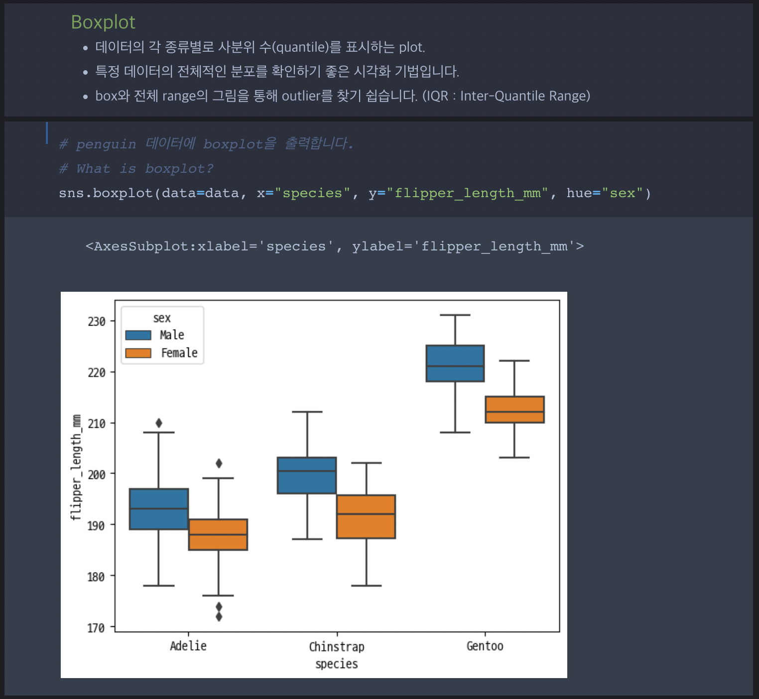 | Part 2. 파이썬 프로그래밍 기초와 데이터분석 | Ch 04_데이터 시각화 | CH04_11. boxplot을 이용한 상자 수염 그림 그리기 |