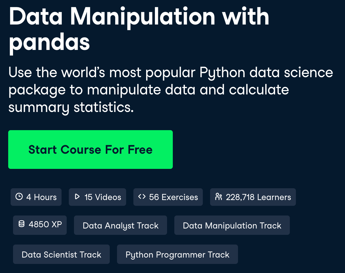 https://www.datacamp.com/courses/data-manipulation-with-pandas